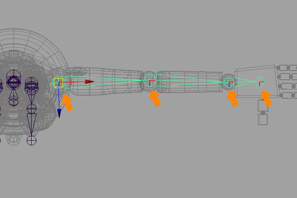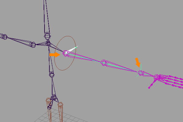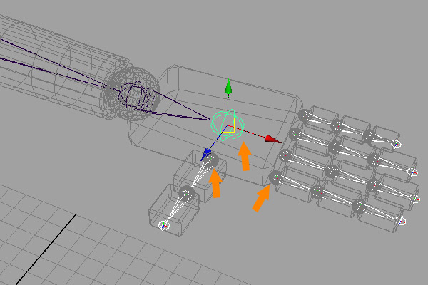 Now make a duplicate copy of it and then snap and align each of them to both hands joints respectively, as shown in the image below.