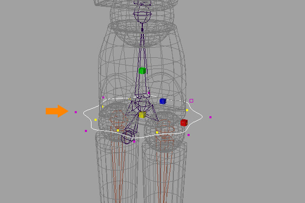 Now with the circular curve selected, press the F9 key to enter Vertex selection mode and then select all the vertices (keep it around the hip mesh as shown in the image.)