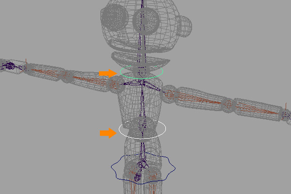 Following the same process, I have created two more circle curves and snapped them to the Spine1_jnt and Spine2_jnt joints respectively, as shown.