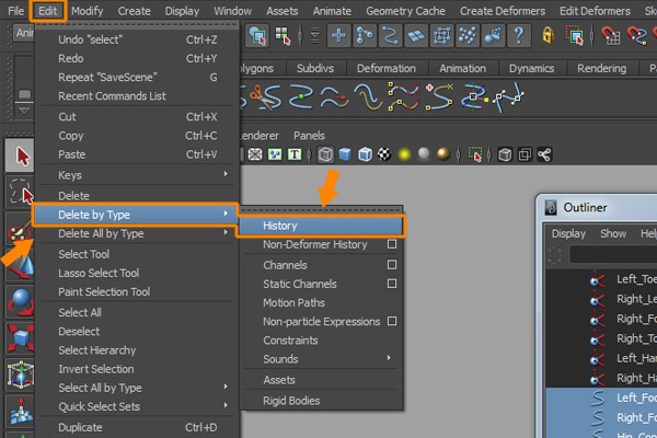 Now, open the Outliner window and then start renaming all the fingers joints as ("Left_thumb1_jnt", "Left_thumb2_jnt" and "Left_thumb3_jnt"), ("Left_index1_jnt", "Left_index2_jnt", "Left_index3_jnt" and "Left_indextip_jnt"), ("Left_middle1_jnt", "Left_middle2_jnt", "Left_middle3_jnt" and "Left_middletip_jnt"), ("Left_ring1_jnt", "Left_ring2_jnt", "Left_ring3_jnt" and "Left_ringtip_jnt") and ("Left_pinky1_jnt", "Left_pinky2_jnt", "Left_pinky3_jnt" and "Left_pinkytip_jnt").