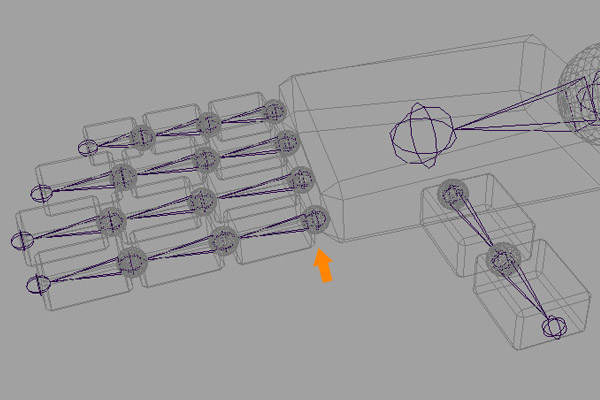 After this, you will see all the fingers’ joints are connected (or "parented") with the Left_hand_jnt. Now do the same thing with the right side fingers joints.