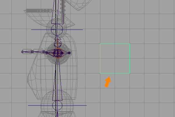 Now jump into the side view and again draw a rectangle shaped curve, as we did previously for the leg control curve.