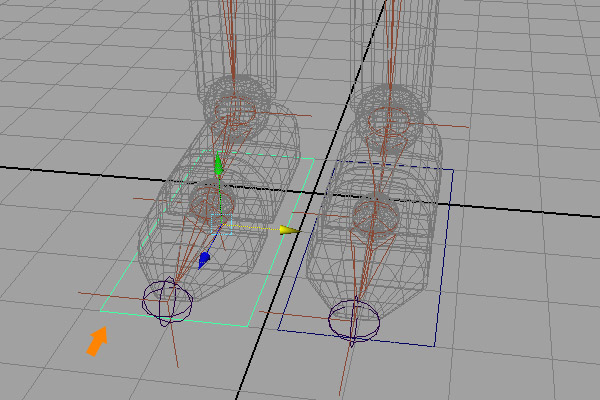 After applying the skin command, let’s check by moving the foot control out. You will notice some problems with the mesh, so we need to correct those.