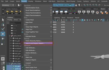 name XXX_geo in goku_high group, go to Modify > Search and Replace Names.