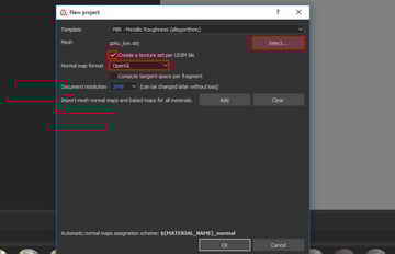 Open Substance Painter. Create a new project by pressing Ctrl-N. Select the low poly obj, and tick Create a texture set per UDIM tile, change the normal map