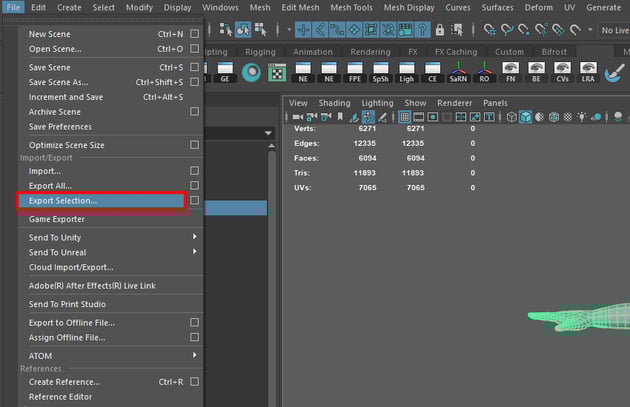 Start Maya and open the file which was saved in the last part of the tutorial series. Select all of the geometry, go to File > Export Selection and export them as obj.
