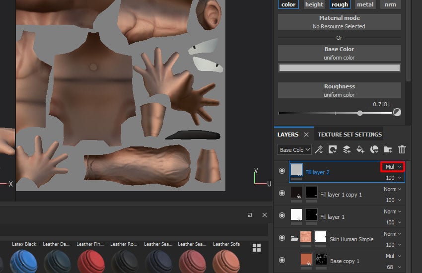Go to Smart Material tab, drag and drop Skin Human Simple material into the layers.
