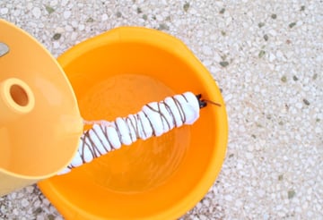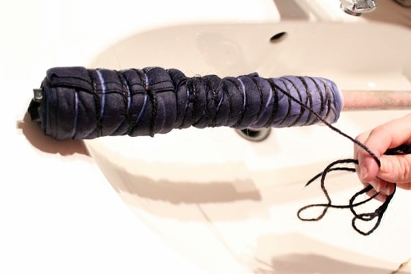 Now that your T-shirt is properly tied on the rod, it's ready to be dyed. First, soak it in cold water.
