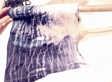 In this tutorial, you learned an easy shibori technique called "arashi". This method involves wrapping cloth around a rod to create a storm-like pattern. You achieved this season's hottest indigo trend by using synthetic blue fabric dye.