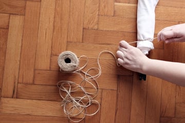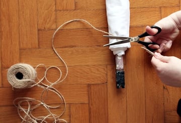 Cut a long piece of thread or twine using a pair of scissors.