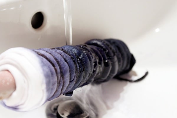 Unroll the T-shirt from the rod. The wet fabric may look very dark, but the color will be lighter when it dries.