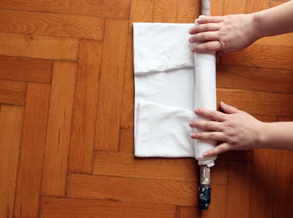 Keep rolling the rod and tightly wrapping the T-Shirt around it.