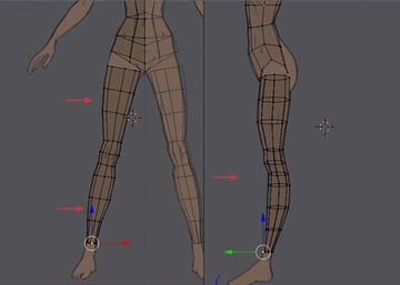 In Vertex selection mode, adjust the vertices according to the leg's flow.