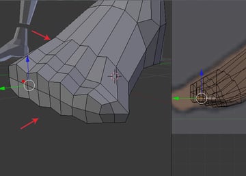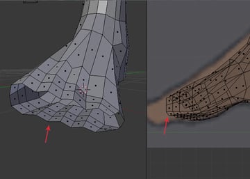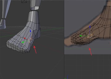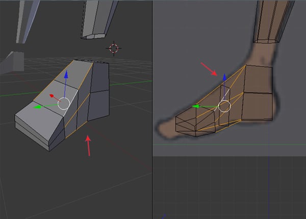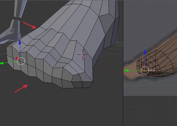 After removing the tri patches, adjust the foot vertices again to better match with the reference images.