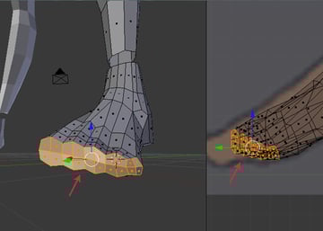 Now jump into Face selection mode and select all the toe faces. Then press the X or Delete key to delete the selected faces.