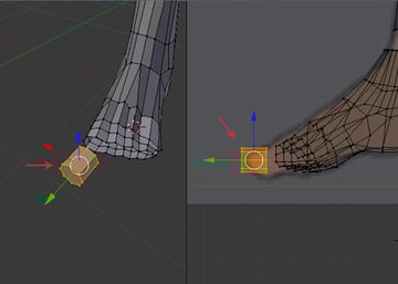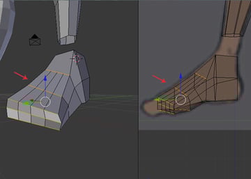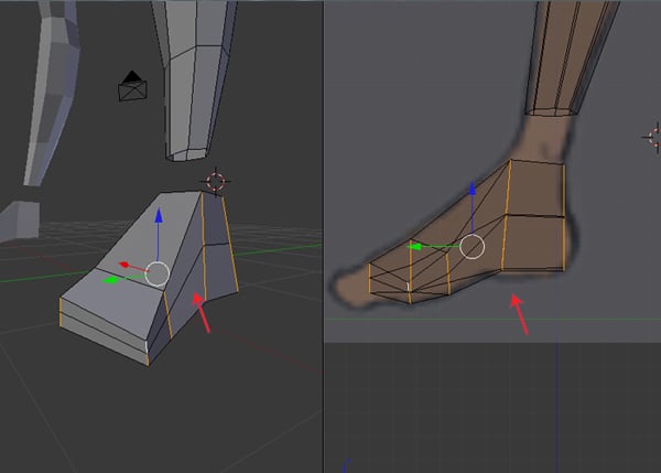 In Vertex selection mode, try to create the initial shape of the foot using the minimum amount of divisions. But we will need more divisions to add the details.
