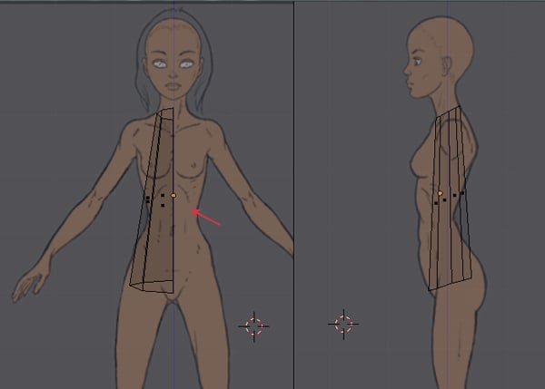 In Vertex selection mode, adjust the vertices according to the reference images in both the front and side views.