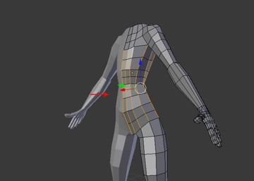 With the faces still selected, press the E key to Extrude and then drag the faces outward a bit to form the shoulder's shape.