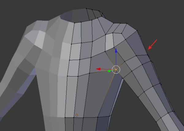 Insert a supporting edge loop around the upper area of the arm mesh, as shown.