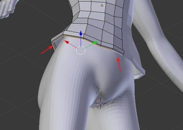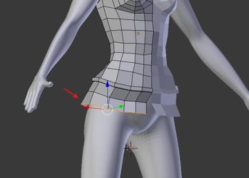 Let’s add detail to the skirt. Select the indicated border edge loop as shown in the image below.