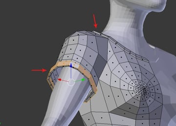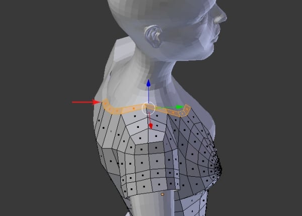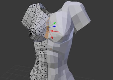 While in Face selection mode, select the 3 indicated faces around the breast area and then press Delete, to delete the selected faces.