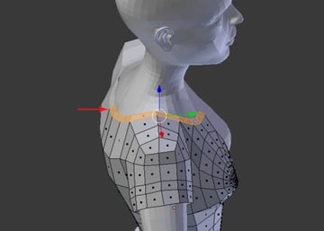 We deleted the cleavage faces because we have to modify the chest mesh into cloth. So adjust the vertices around the cleavage area as if cloth on the body.