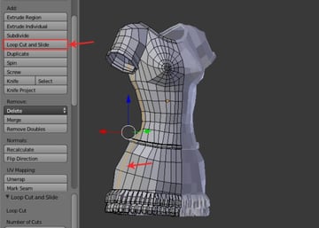 Now let’s start sculpting the cloth mesh. But before we do that, we need to increase the subdivision of the mesh as sculpting demands a highly subdivided mesh. Here we use the Loop Cut and Slide tool to add subdivision, as shown in the image below.