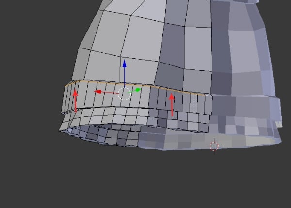 With the same faces selected, press E to extrude. We need this extrusion to add extra detail to the skirt.