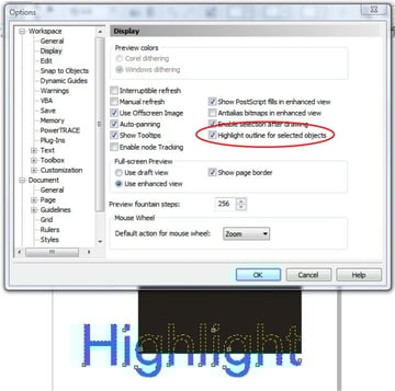 Make sure to check Highlight outline… (Tools > Option > Workspace > Display), so you can see the edge of any selected object, even it is on the bottom layer.
