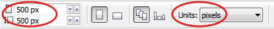 Create a new blank and change the units to pixels, then change the size to 500px by 500px.