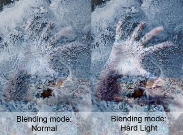 After you set the Fuzziness, press OK and the tool makes the selection. Press Command + C to copy the selection, click on your photo manipulation and press Command + V to paste the ice. Now press Command + T and resize it to the proper size (I resized it to 25%). Change the Blending Mode to Hard Light (you can find the Blending Mode on the top of the Layers palette).
