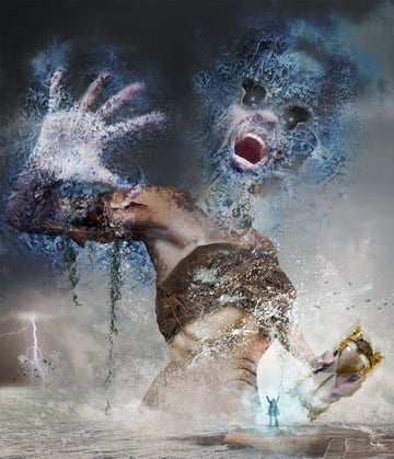 Open the photo with waves, go to Select > Color Range and set Fuzziness on the value you're comfortable with. It's the same as selecting ice in Step 3. Just remember that the white parts will be selected and the black will not, gray will be semi-transparent. You should place some waves in front of the demon and also some behind, so it will look realistic. For inspiration on how to place waves look at the animation below.