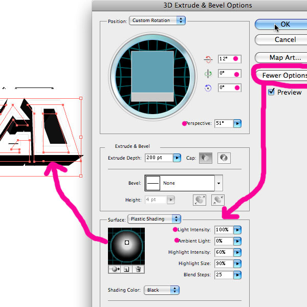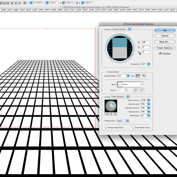 I changed the logo fill and stroke to white. I've found that when I apply Extrude and Bevel, white is the best choice to get crisp whites and blacks in the 3D text.