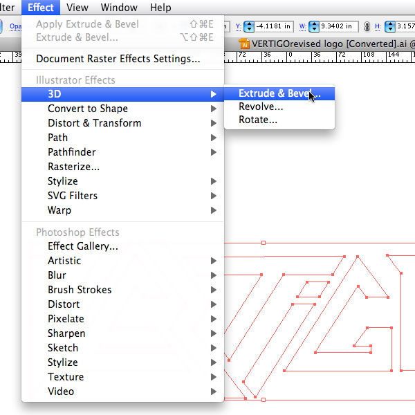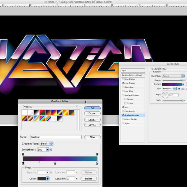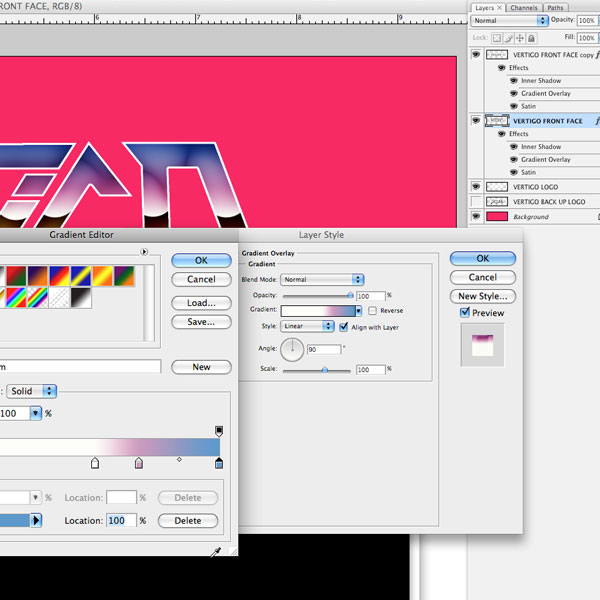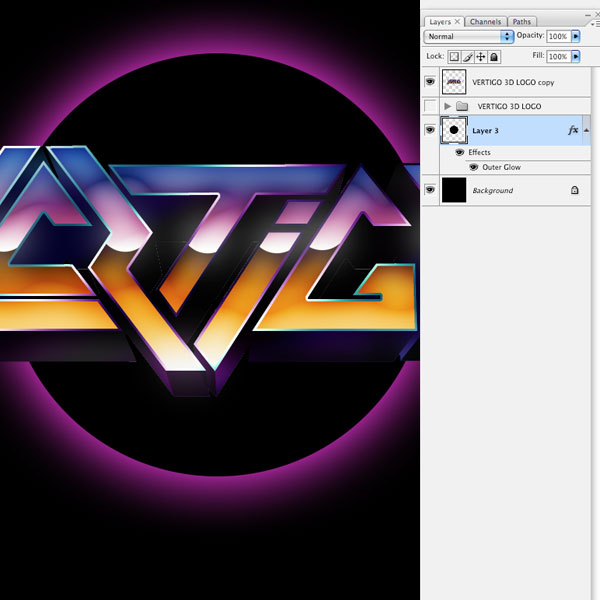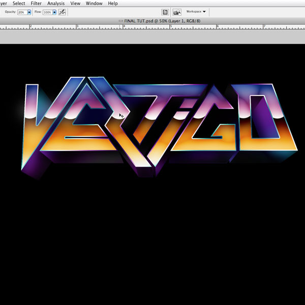 I originally developed this Vertigo logo and rendered a 3D version of it using Cinema 4D. However, for this tutorial I really wanted to find a way to get hot 3D text without using a 3D dedicated program.