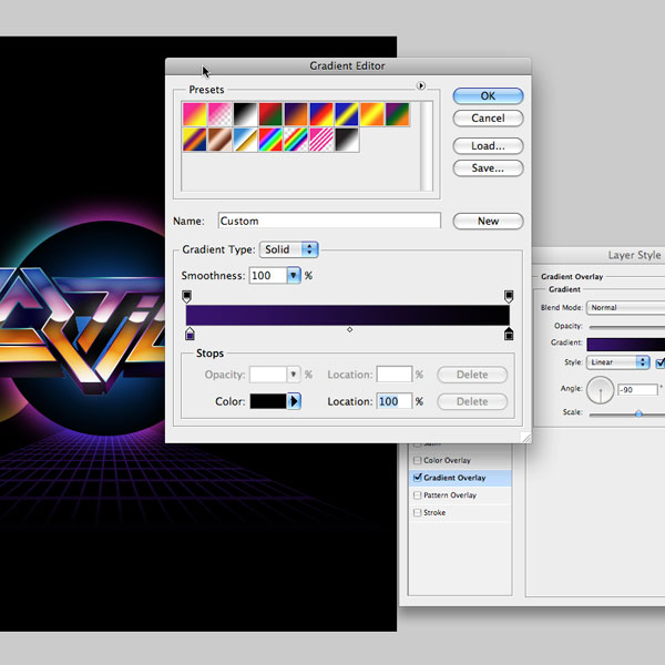 I applied a layer style of Gradient Overlay to my grid using purple and black.
