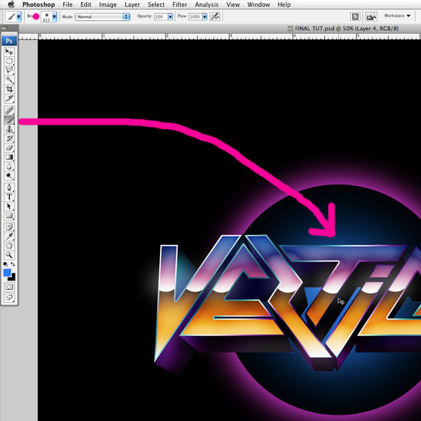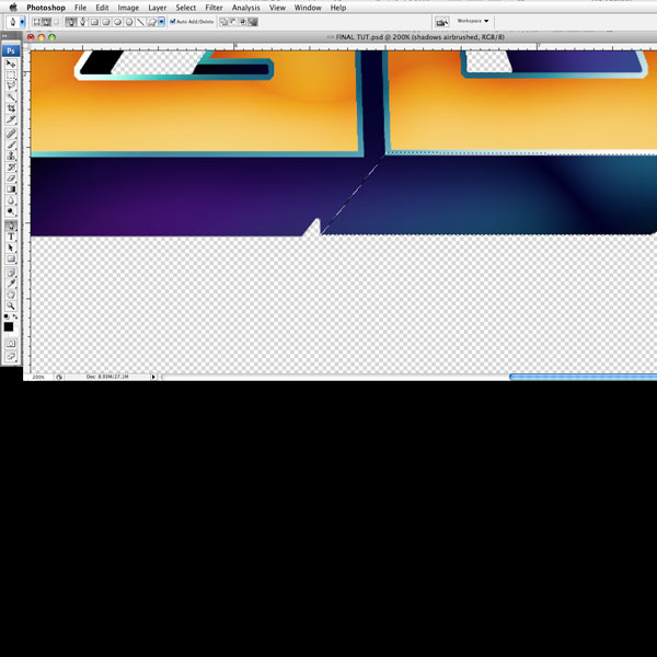 For some added detail, I made a selection near some key corners and will airbrush some darks to create the edges of my text.