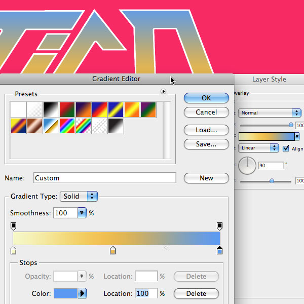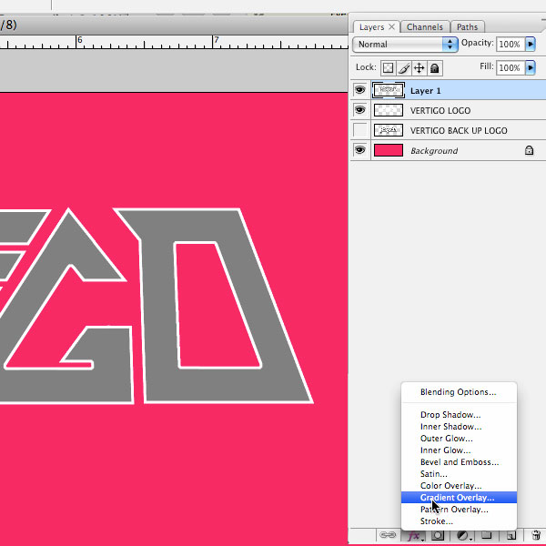 I added a Gradient Overlay by clicking the FX button at the bottom of my layers panel.