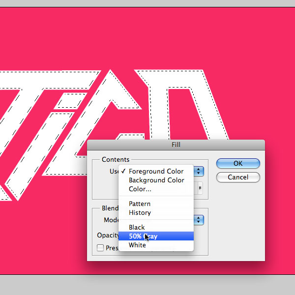 I chose Edit/Fill and filled my layer with a 50% gray so that I can see the difference between my two layers.