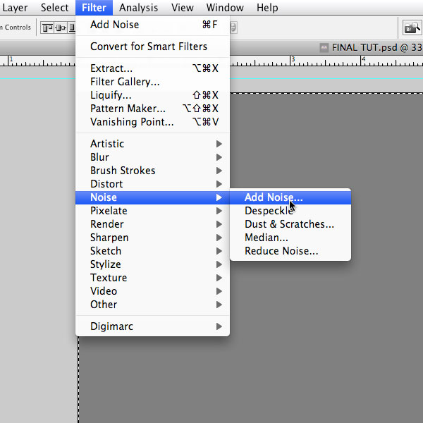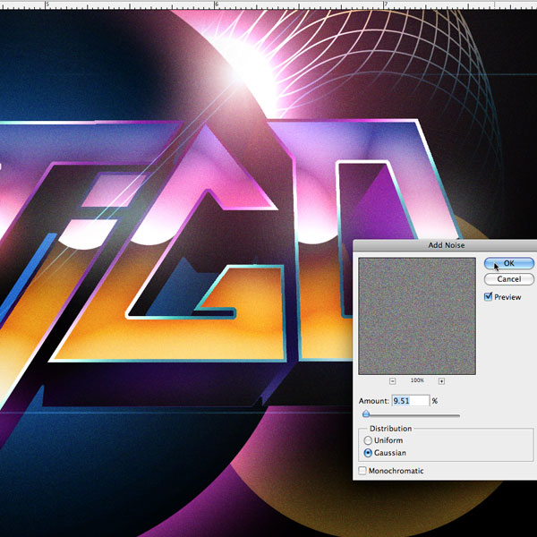 Because I have already set my layer to soft light, I can watch the results of my noise as I try to decide how much to add.