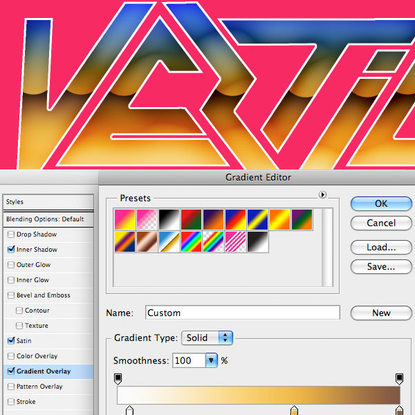 Next, I went back in and adjusted the Gradient Overlay colors for that layer. I faded from a dark brown, into a yellow, and then white. The contrast is key because that is what helps your image to really POP!