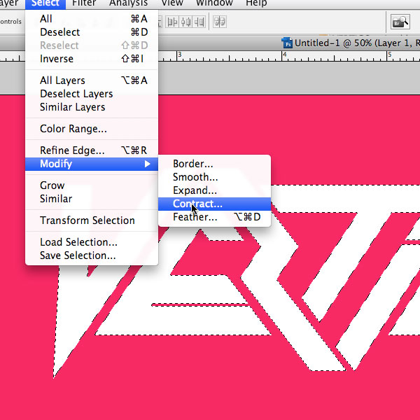 I copied the layer that has my white logo on it and made a selection of everything on the layer. Then, I contracted the selection by 10 pixels or so and deleted the inverse.
