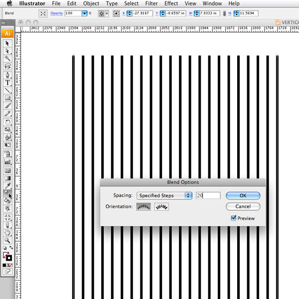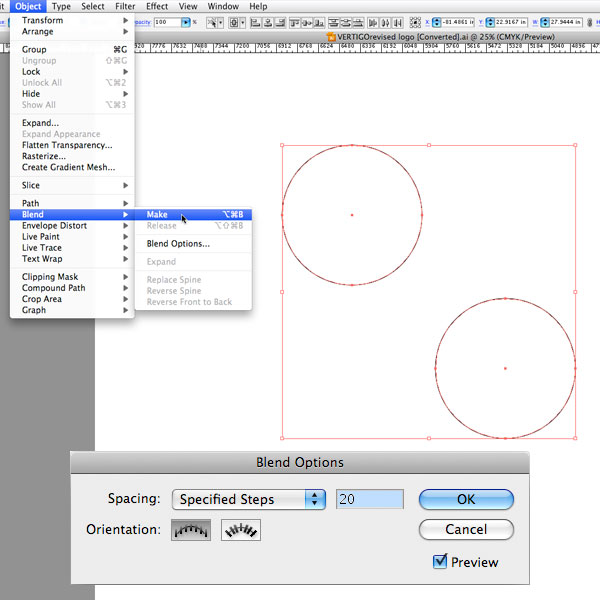 Back in Illustrator, I created two circles and applied a Blend to them the same way I did for the lines that made up my grid earlier.