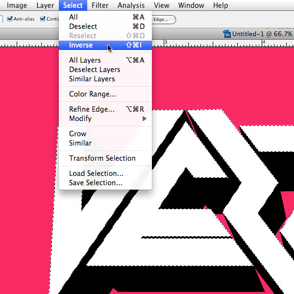 I copied that layer and selected the inverse. I deleted the inverse so that only my white areas are on a layer by themselves. I still have a copy of the logo on it's original pasted layer, as I'll need that later in the tut.