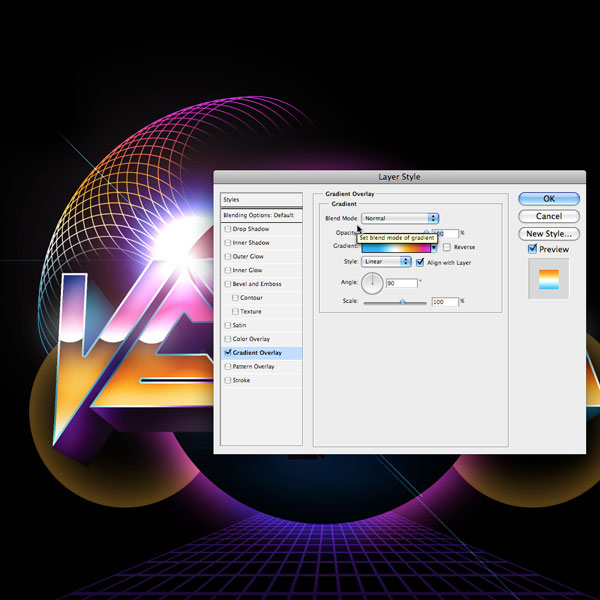 I applied a layer style of Gradient Overlay to my circle blended layer.