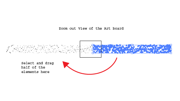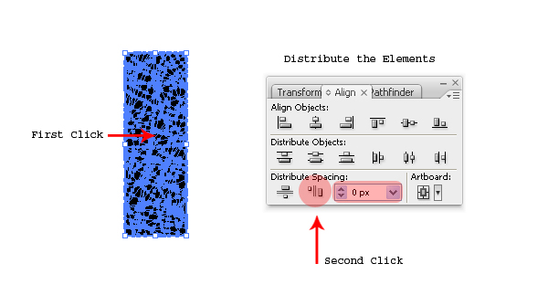 Now let’s scatter the elements. Select the entire set and click once on the approximate center of the rectangle. Next, click on Horizontal Distribute Space in the Align palette with 0px spacing value. This will scatter the elements on a large area of your artboard.
