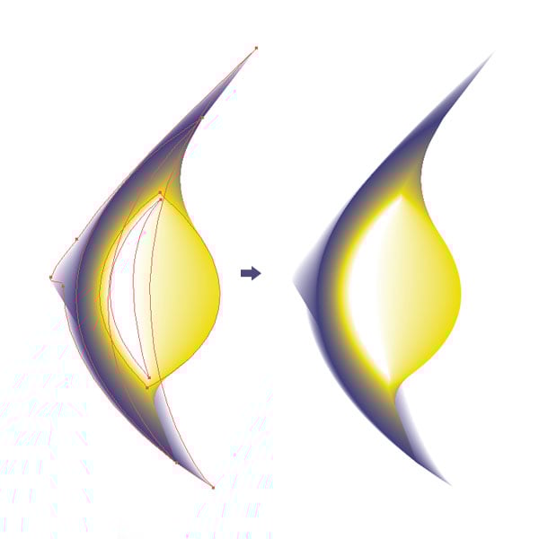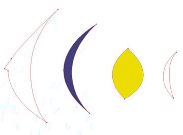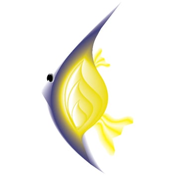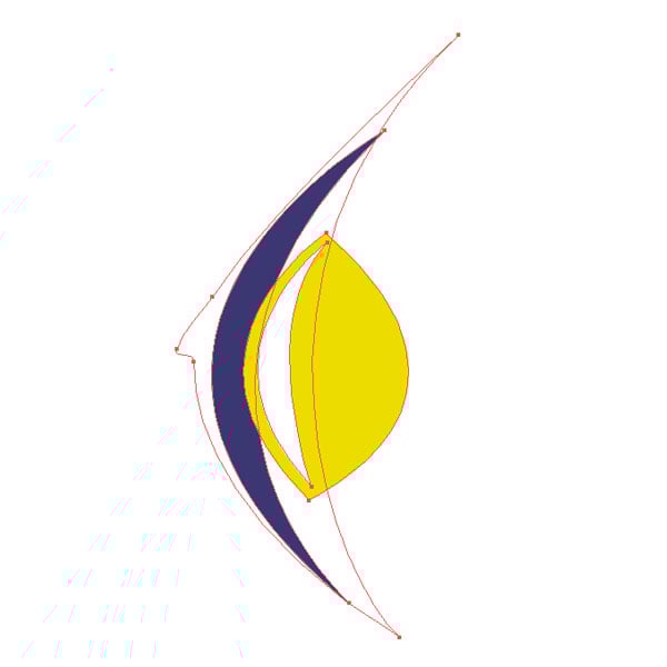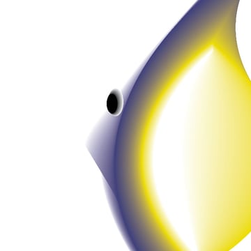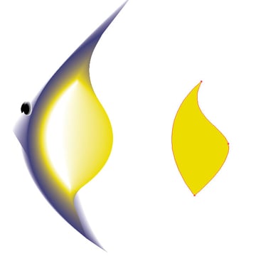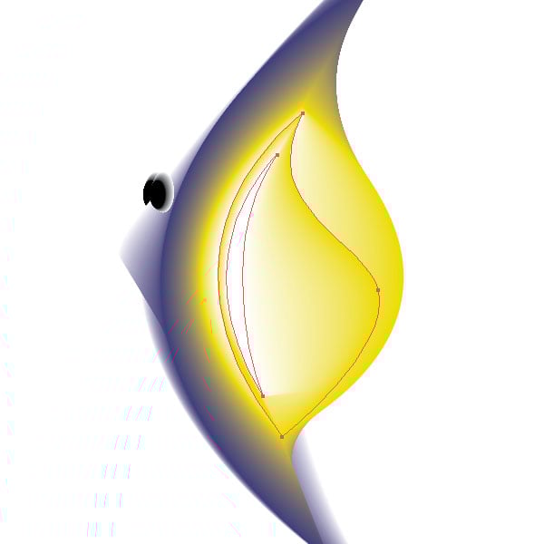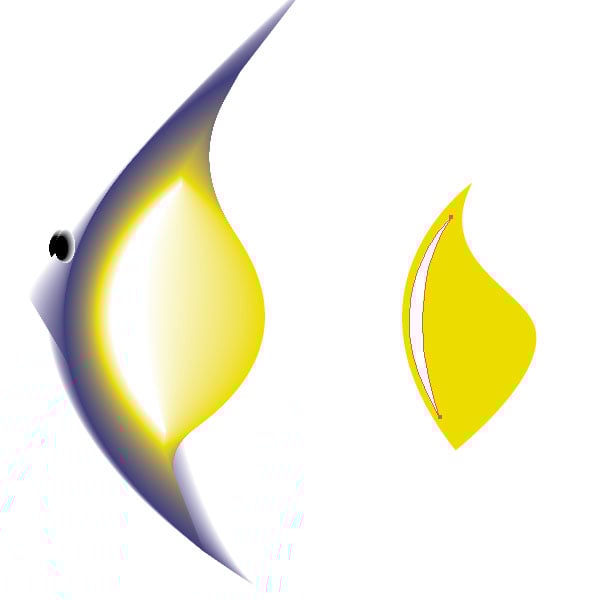Create shapes like you see in the image below. I created four shapes. Once for the outline filled with white of the fish. Then a sickle like shape just a little smaller, then the outline filled with a blue. Next, I created a yellow filled shape about half the size of the outline. The fourth shape is again a sickle shape filled with white.