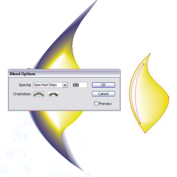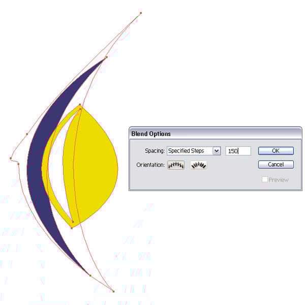 Select all four shapes and go to Object > Blend > Blend Options. Apply the settings as following: Specific Steps of 150.