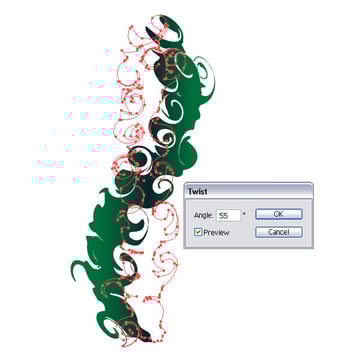 When done, select it and got to Effect > Distort & Transform > Twist. Apply an angle of 55 degrees.