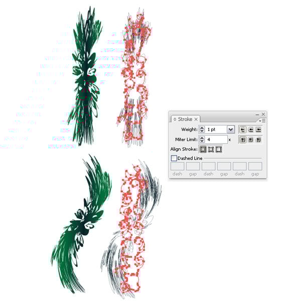 Now we have two seaweed shapes. Once straight and one twisted. Make a duplicate of both and put the fill to none and apply a Stroke in a dark color..