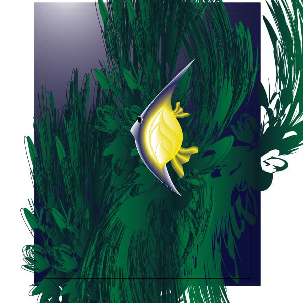 I selected all shapes and applied a clipping path (Command + 7) and here we have a nice underwater scene. I also copied the fishes and changes some of the colors and scaled them down. I hid some behind some dark seaweed. That's it folks. I hope you enjoyed this tutorial!